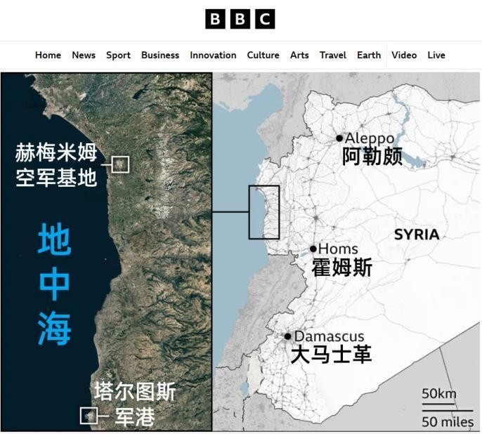 驻叙俄军基地分布图。图/英广播公司网站截图