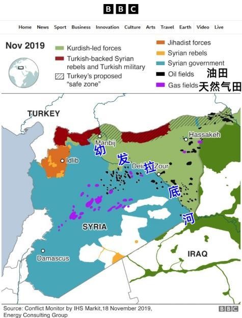 叙主要油气田分布图。图/英广播公司网站截图