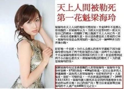 那么,身为北京著名会所“天上人间”的“花魁”,梁海玲究竟是做了什么事,才让她死的如此凄惨呢?