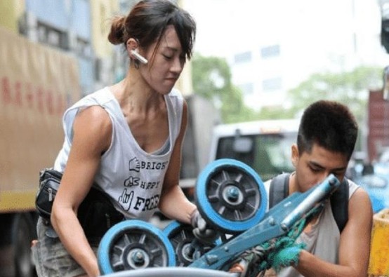 在接受采访时,朱芊佩也坦言自己并不是一开始就这么顺利。虽然自己从小的力气就不小,但是和男士相比,女生的受重力差很多,所以刚开始在搬运货物的时候会显得很吃力。但是日复一日,年复一年,朱芊佩早习惯了这样的工作强度,而且因为长期的体力劳动,朱芊佩的腿部肌肉十分结实。