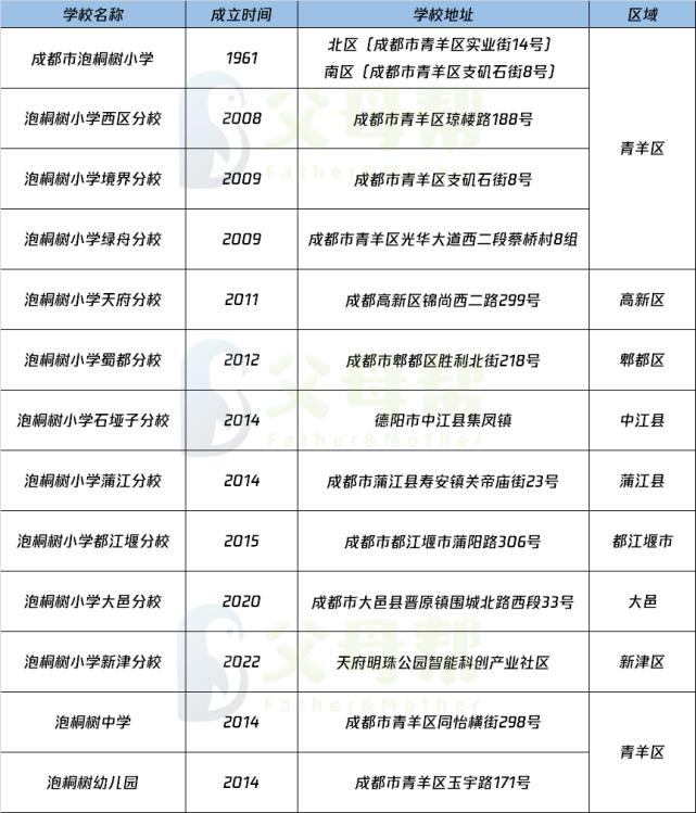 今天咱们就为大家来盘点成都“泡桐树小学教育集团”的各个学校。各位家长们转发收藏哦!