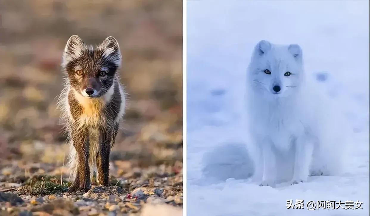 29.北极狐的夏天和冬天。