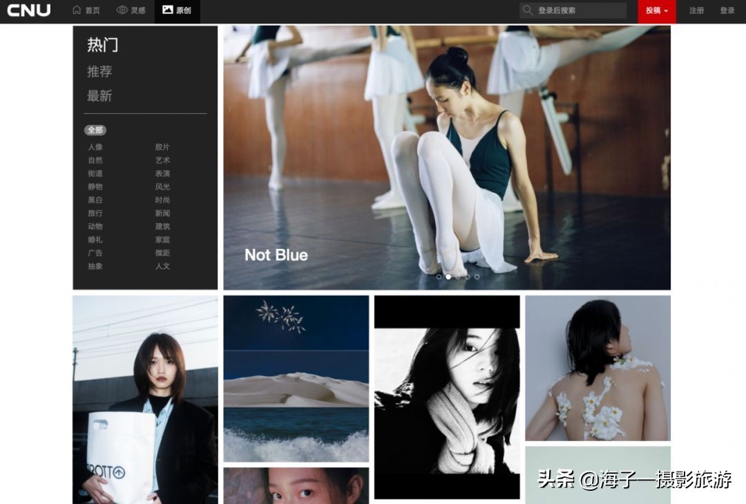 这个网站应该有很多人知道,但这里我还想推荐下。网站⾥面有两个板块比较好,一个是灵感板块,一个是原创板块。