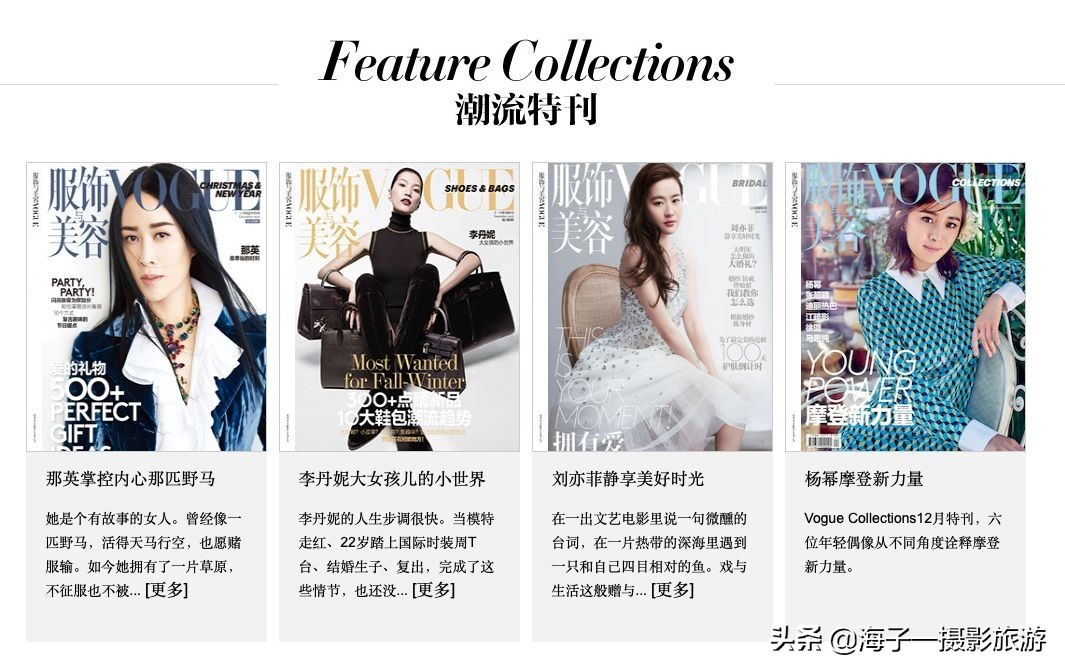 这个杂志应该很多人都听说过,里面更多的是一些时尚杂志的拍摄作品和一些肖像摄影作品,板块的内容比较丰富,有时尚资讯、秀场、潮流等。