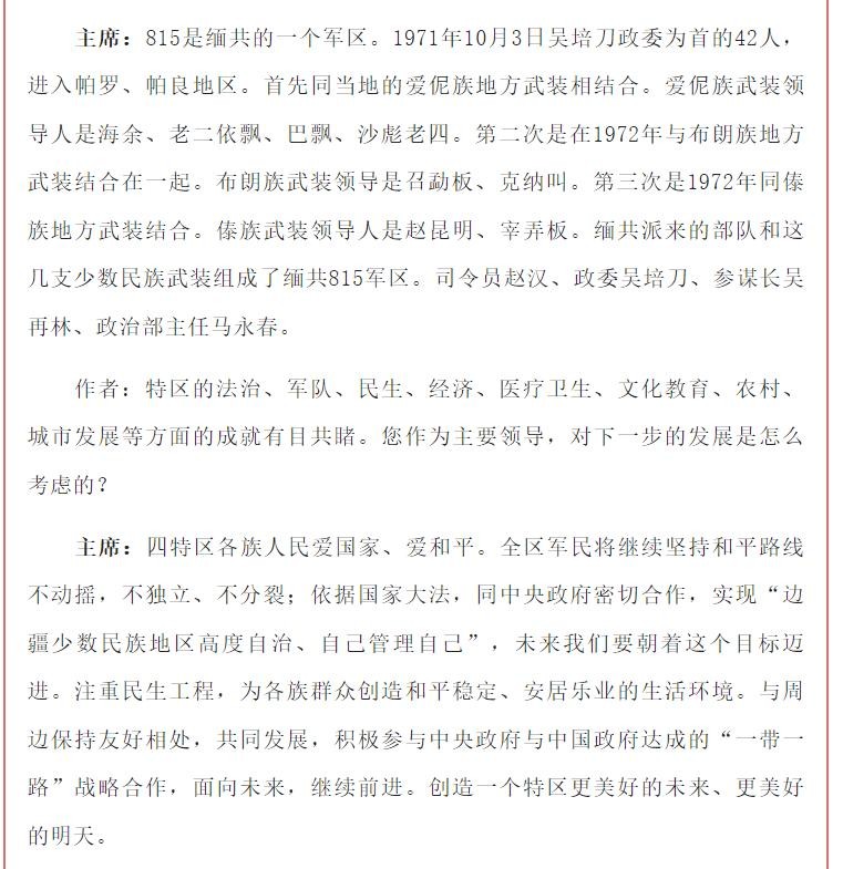 50年代以来,缅甸掸邦各族起来反抗缅政府,到60年代这一区域活动的傣族,哈尼族,布朗族等武装。真正武装林立,后被缅共人民军成功统战,建立815军区。