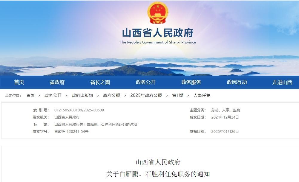 白雁鹏的山西演艺(集团)有限责任公司副总经理职务;石胜利的山西晋勤服务集团有限责任公司副总经理职务。