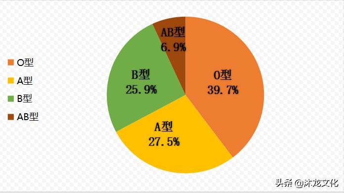 O型占39.7%,A型占27.5%,B型占25.9%,AB型占6.9%。