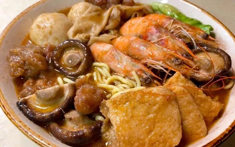 沙茶面起源于福建沿海一带,面条以细面为佳,再配上厚厚一层沙茶酱,酸辣开胃。沙茶酱的制作要求高,以虾米为主要原料,再配上花生、芝麻等食材,经过多道工序才能呈现金黄诱人的色泽。微辣中带甜,回味无穷。更有甚者,沙茶酱中再加入新鲜虾仁,浓浓虾香扑鼻而来,令人欲罢不能。