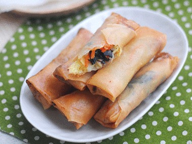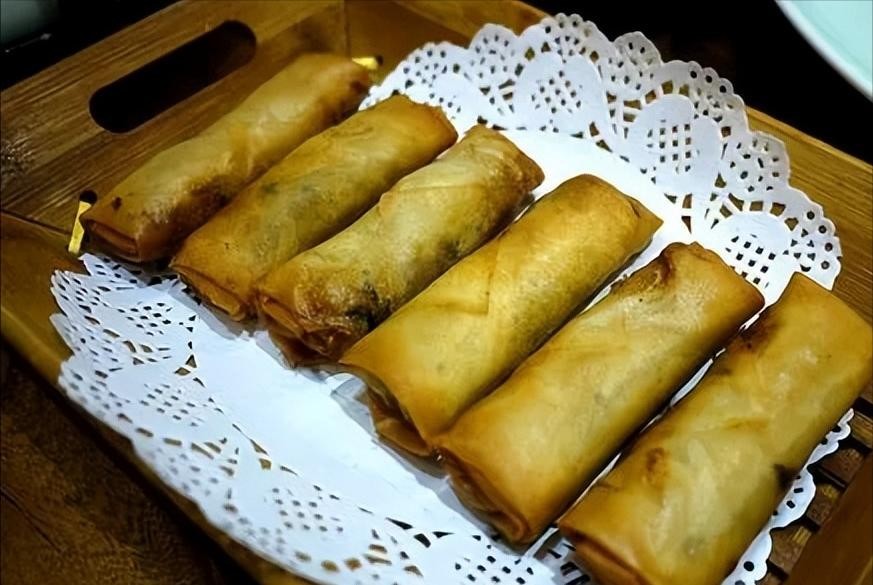 最经典的做法就是蔬菜春卷,常见的蔬菜有白菜、韭菜、蘑菇、笋干、豆腐干等。配上少许猪肉末,整个春卷馅鲜甜软糯,很有嚼头。趁热吃,皮酥肉香蔬菜香,满口生香。