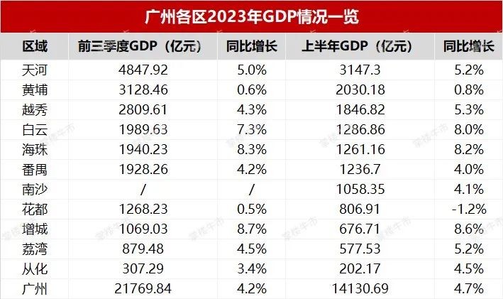 根据前三季度数据,只要四季度不是特别拉跨,增城、海珠和白云完成今年增长目标,那就是手到擒来的事了。
