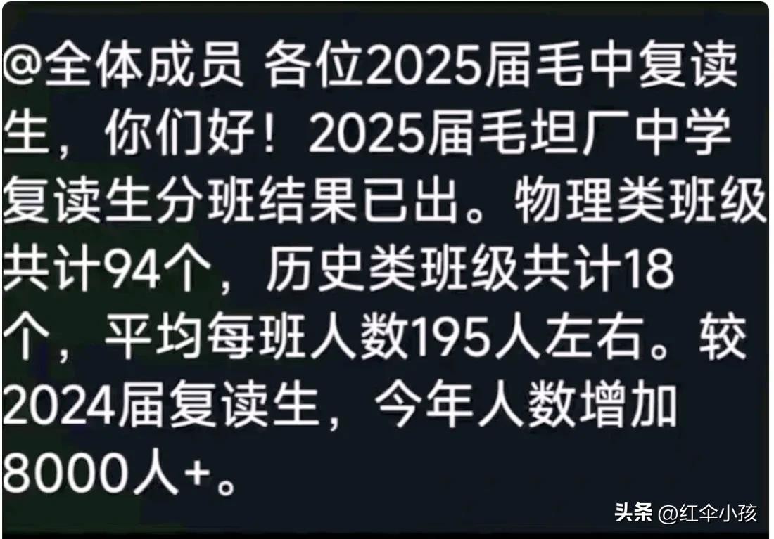 毛坦厂复读更疯狂了:2025届112个班,每班195人,人数首次破2万
