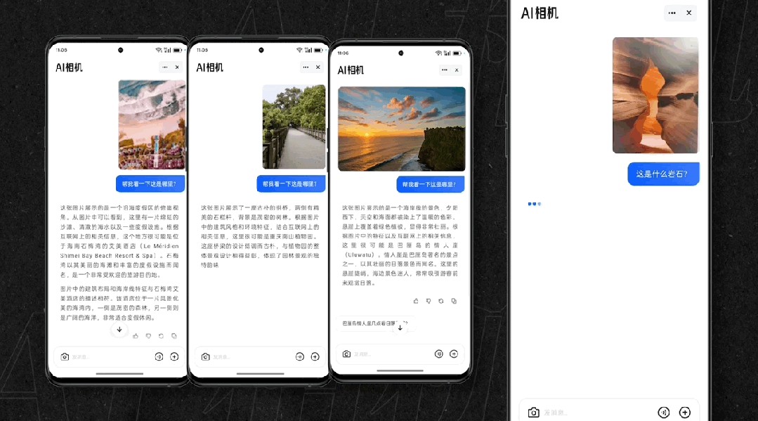 发现一些美景或者网上搜的图片,AI相机居然大部分都帮我精准找到了位置。包括我可以问更细节的东西。比如这是什么岩石,国内最近可以看到这些岩石的地方在哪里?